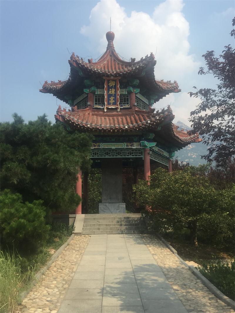 該亭高 8 米, 六角重檐尖頂 ,亭內置“ 御碑”, 碑高 3.15米, 寬 1.10 米, 厚 0.37米, 清代風格。碑刻康熙四十二年御制詩一首, 作者是清圣祖康熙皇帝, 名玄燁。目前這里已成為泰山廣場的一大文化景點。
